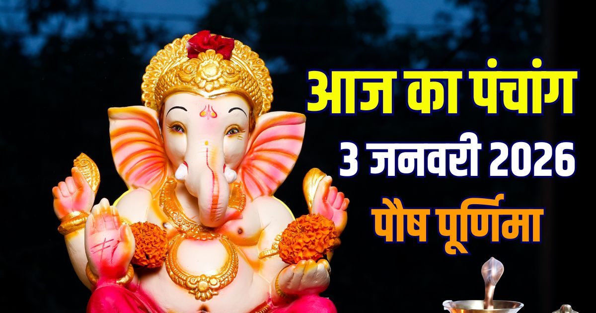 आज का पंचांग, 3 जनवरी 2026: पौष पूर्णिमा, शनिवार व्रत, 2 शुभ योग, दान से मिटेगा शनि दोष! देखें दिनभर के सभी मुहूर्त, राहुकाल, अशुभ समय