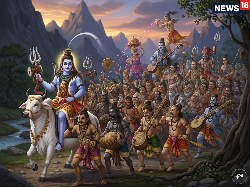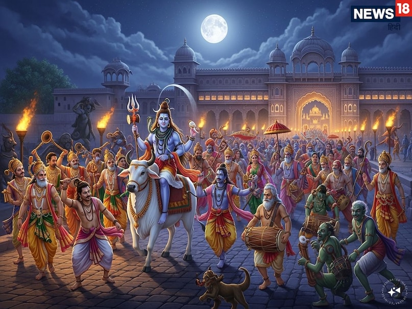 Mahashivratri Shiv Barat 2026: आज देशभर में धूमधाम से महाशिवरात्रि का पर्व मनाया जा रहा है. इस दिन भगवान शिव और माता पार्वती का विवाह हुआ था. बताया जाता है कि आज तक ना ऐसा विवाह हुआ था और ना कभी होगा. इस विवाह में देवताओं के असुर, मनुष्य के साथ साथ भूत प्रेत सभी मौजूद थे. आइए जानते हैं भगवान शिव की बारात के बारे में…