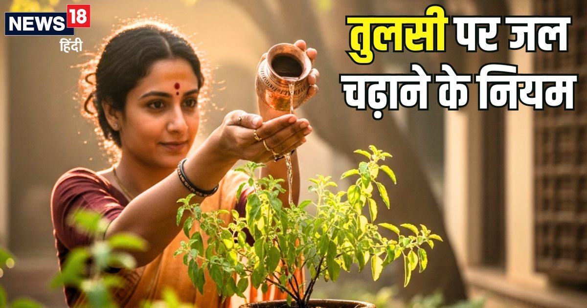 तुलसी की पूजा करें तो इससे जुड़ें नियमों की जानकारी भी होना जरूरी है. खासतौर पर जल चढ़ाने को लेकर. शास्त्रों के मुताबिक, तुलसी पर जल चढ़ाने को लेकर कुछ नियम बताए गए हैं. इसलिए जल चढ़ाते समय कुछ काम करने से बचना चाहिए. इन नियमों के बारे में News18 को बता रहे हैं उन्नाव के ज्योतिषाचार्य ऋषिकांत मिश्र शास्त्री. (Image- AI)