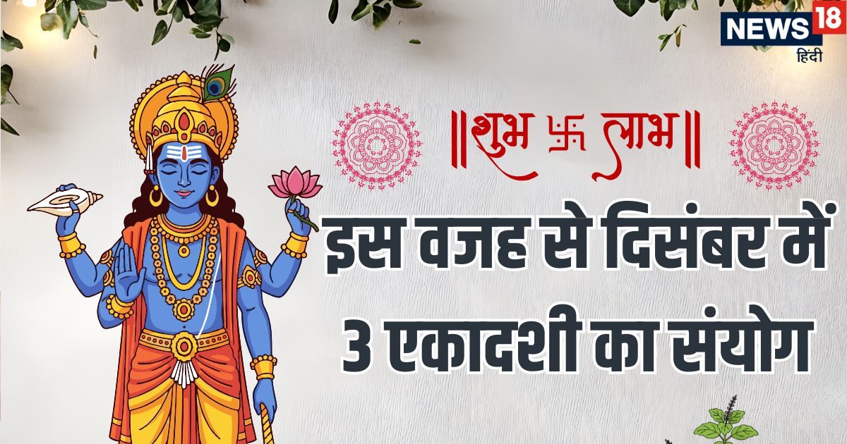 Ekadashi Vrat List in Decemebr 2025: दिसंबर का महीना धार्मिक लिहाज से बेहद खास माना जा रहा है क्योंकि इस मास में एक या दो नहीं बल्कि तीन एकादशी तिथियों का व्रत किया जाएगा. हिंदू धर्म में एकादशी तिथि का विशेष महत्व है और यह तिथि सभी दुख हरने वाली बताई गई है. एकादशी तिथि हर चंद्र पक्ष की 11वीं तिथि है, जिसमे व्रत रखकर भगवान विष्णु की विधि विधान के साथ पूजा अर्चना की जाती है. यह तिथि देवताओं की ऊर्जा का केंद्र मानी जाती है और मनुष्य के शरीर, मन तथा चेतना पर सर्वोत्तम प्रभाव डालती है. पुराणों में मान्यता है कि भगवान विष्णु को समर्पित एकादशी का व्रत करके पूजा अर्चना करने से व्यक्ति जन्म-मरण के बंधन से मुक्त हो जाता है और बैकुंठ धाम की प्राप्ति भी होती है. आइए जानते हैं दिसंबर मास में आखिर तीन एकादशी क्यों हैं…