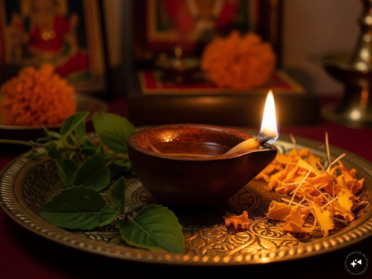 इस महीने में तुलसी की सूखी लकड़ी का दीया जलाना सबसे शुभ माना गया है, अगर घर में गणेश जी की पूजा होती है तो तुलसी के स्थान पर दूर्वा घास का दीया जलाना बेहतर है, क्योंकि गणेश पूजन में तुलसी वर्जित होती है. तुलसी की सूखी लकड़ी से जलने वाला दीया सिर्फ पूजा का हिस्सा नहीं, बल्कि एक तरह से घर के वातावरण को भी पवित्र करता है.
