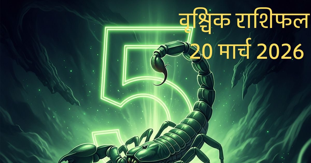 Aaj ka Vrishchik Rashifal 20 march 2026: वृश्चिक राशि वाले आज सावधान रहें. आज का दिन आपके लिए आत्म-संयम और धैर्य की परीक्षा लेने वाला हो सकता है. करियर में बड़ी सफलता के लिए ऑफिस की राजनीति से दूरी बनाना ही आपके लिए बेहतर होगा. आखिर क्यों आपके लिए मौन और सेवा ही है जीत का मंत्र? जानें कल का शुभ रंग, भाग्यशाली अंक और आर्थिक स्थिति का पूरा हाल.