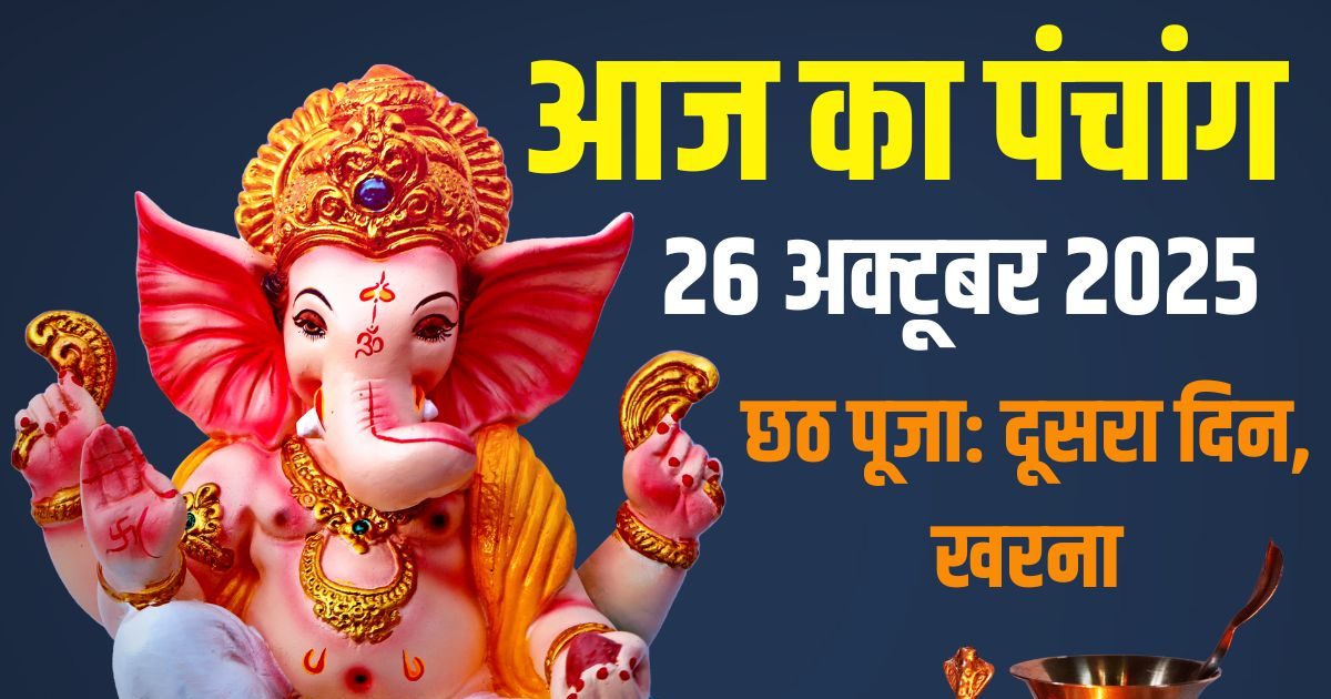Aaj Ka Panchang (आज का पंचांग), 26 October 2025: आज छठ पूजा का दूसरा दिन, खरना, लाभ पंचमी, रविवार व्रत और सूर्य पूजा है. पंचांग के अनुसार, आज कार्तिक शुक्ल पंचमी तिथि, ज्येष्ठा नक्षत्र, बव करण, शोभन योग, पश्चिम का दिशाशूल और वृश्चिक राशि में चंद्रमा है. रवि योग सुबह में 06:29 ए एम से बन रहा है, जबकि इसके समापन पर 10:46 ए एम से सर्वार्थ सिद्धि योग है. ये दोनों ही शुभ फलदायी हैं. छठ पूजा के खरना में व्रती पूरे दिन निर्जला व्रत रखता है. शाम को मिट्टी के चूल्हे पर रोटी और गुड़ वाली खीर बनाते हैं और खाते हैं. इस प्रकार से दूसरा दिन व्यतीत होता है. आज लाभ पंचमी भी है. लाभ पंचमी के दिन गुजरात में दिवाली का समापन होता है. लाभ पंचमी के दिन पूजा करने से बिजनेस में उन्नति, धन लाभ होता है. लाभ पंचमी पूजा का मुहूर्त 06:29 ए एम से 10:13 ए एम तक है.