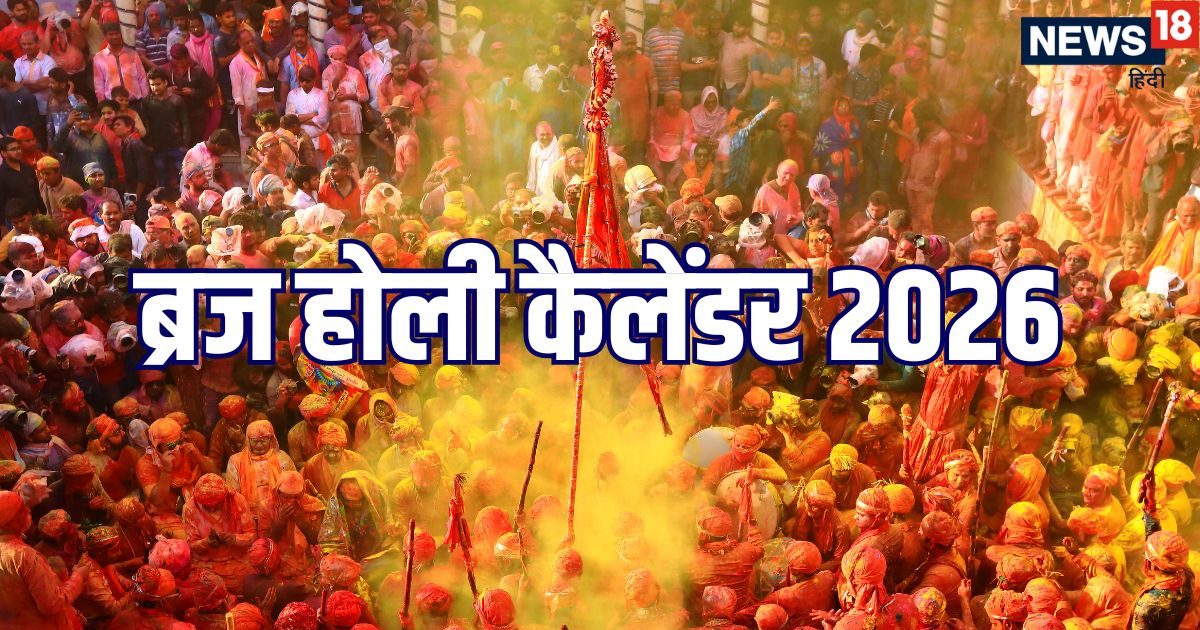 Mathura Vrindavan Holi Dates 2026: देश के अन्य हिस्सों में होली एक या दो दिन मनाते हैं लेकिन मथुरा-वृंदावन समेत पूरे ब्रज होली का यह उत्सव 40 दिन तक मनाया जाता है. कान्हा की नगरी में होली की शुरुआत बसंत पंचमी से हो जाती है, इस दिन शुभ मुहूर्त में होली का डांडा गाड़ा दिया जाता है. यह एक सिग्नल होता है कि अब कमर कस लीजिए क्योंकि ब्रज की होली की शुरुआत हो चुकी है. पूरे ब्रज क्षेत्र में मनाई जाने वाली होली केवल रंगों का त्योहार नहीं, बल्कि यह भक्ति, परंपरा और संस्कृति का जीवंत उत्सव है. ब्रज की होली को देश-दुनिया में उसकी अनोखी परंपराओं, लंबे उत्सव काल और श्रीकृष्ण से जुड़ी लोककथाओं के कारण विशेष स्थान प्राप्त है. अगर आप इस बार ब्रज में आकर होली का आनंद लेना चाहते हैं तो आप यहां कैलेंडर के माध्यम से जान लीजिए कि ब्रज के किस मंदिर में होली का उत्सव कब मनाया जाएगा.