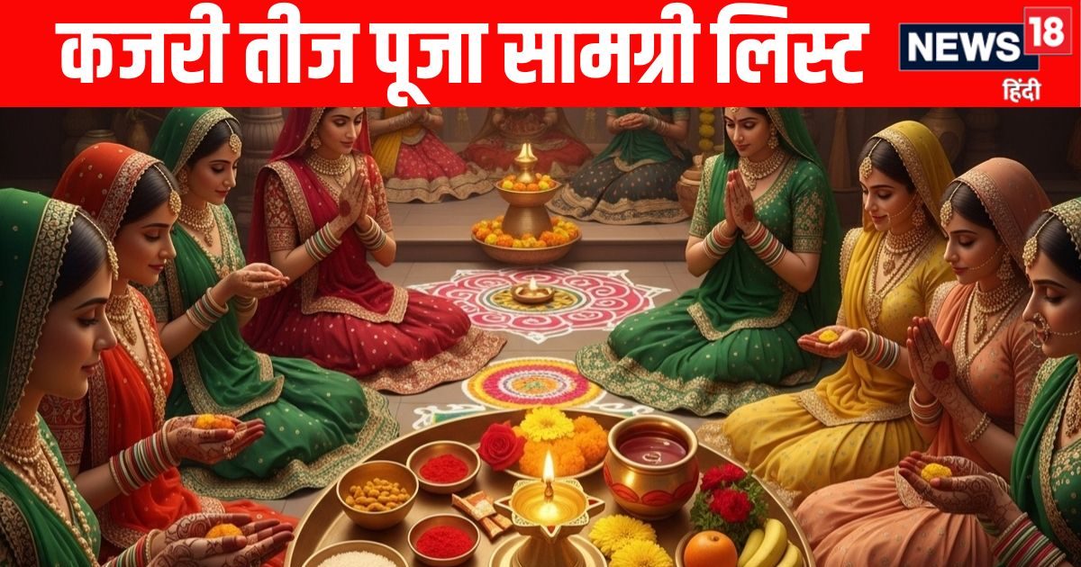 कजरी तीज की पूजा में प्रयुक्त सामग्री साधारण होती है, लेकिन इसमें कुछ विशेष वस्तुएं होती हैं जो व्रत और कथा के विधान से जुड़ी हैं. यहां पारंपरिक पूजा सामग्री लिस्ट दी जा रही है —