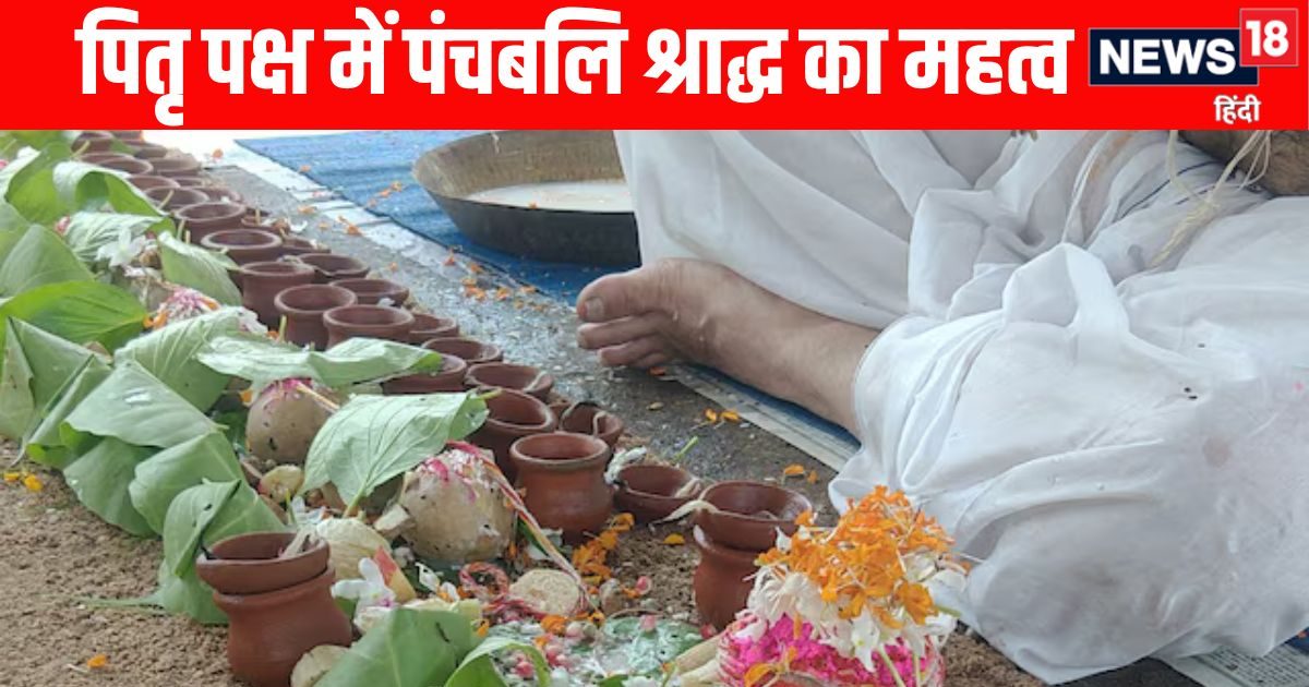 Panchbali Shraddh Karm During Pitru Paksh: पितृ पक्ष की शुरुआत हो चुकी है, इस साल 7 सितंबर से 21 सितंबर तक श्राद्ध पक्ष चलेगा. हिंदू धर्म में श्राद्ध पक्ष का विशेष महत्व है. कहा जाता है कि इस दौरान पितर पृथ्वी लोक पर अपने परिजनों के यहां आते हैं. ऐसे में उनके प्रति श्राद्ध, तर्पण व पिंडदान किया जाता है, जिससे उनकी आत्मा को शांति मिलती है और मोक्ष की प्राप्ति होती है. पितृपक्ष में पंचबलि श्राद्ध का विशेष महत्व है, इसे पंचबलि कर्म भी कहा जाता है. मान्यता है कि बिना पंचबलि श्राद्ध के पितृपक्ष के कर्म पूरे नहीं होते. पितृपक्ष में यह कर्म पितरों, देवताओं और जीवों सभी की तृप्ति करता है. आइए जानते हैं पितृपक्ष में पंचबलि कर्म क्या है और किन 5 जगहों पर भोजन रखा जाता है…